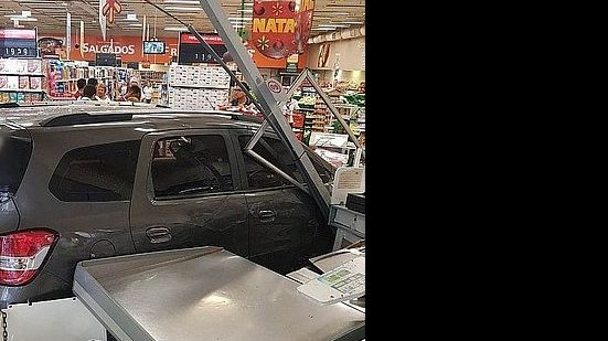 Imagens registradas pela câmera do aparelho celular da jornalista Maria Barreiros, que presenciou o acidente, mostram um carro Spin, de cor cinza e de placa ORI-7650, parado dentro do estabelecimento após atingir um dos caixas do local. A porta principal do supermercado foi destruída com a colisão.
