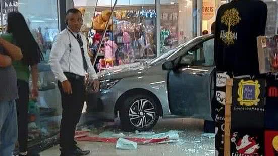 Uma mulher ligou um carro de exposição dentro do shopping em Manaus na noite dessa quarta-feira (24). Após a partida, o veículo arrancou e acabou atingindo uma loja.