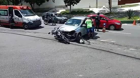 Uma mulher de 47 anos ficou ferida em um acidente entre um carro e uma motocicleta no final da manhã desta segunda-feira, 6, na Avenida Moreira e Silva, próximo à Ladeira dos Martírios, no Centro de Maceió.