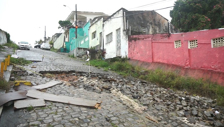 A ladeira Ambrósio Lyra que liga o Centro ao Farol está assim há 4 meses: tomada por buracos