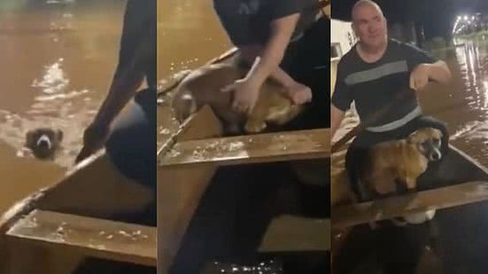 Vídeos nas redes sociais têm mostrado também o drama enfrentado por animais afetados pelas enchentes provocadas pelo ciclone extratropical que atingiu o Rio Grande do Sul. Em uma das publicações, pai e filha estavam pelas ruas de Muçum na noite de quinta-feira, 7, dentro de um bote, quando avistaram um cachorro no meio da inundação.
