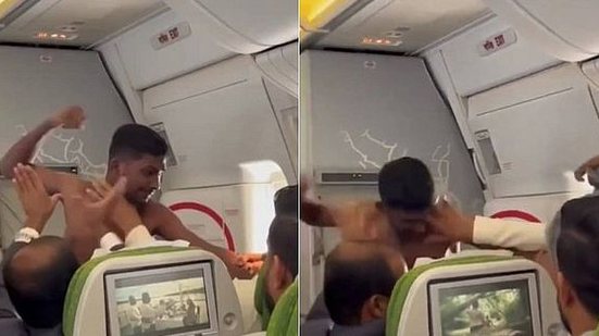 Em vídeo, um homem sem camisa é visto em pé, alterado e discutindo com outro passageiro, que está sentado. Em determinado momento, o passageiro seminu tenta arrancar o outro homem do assento. Em poucos segundos, os dois estão trocando socos. Eles estariam alcoolizados.