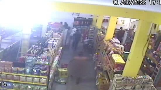 Em outra câmera, dentro do supermercado, é possível observar o homem visivelmente alterado. Ele derruba as prateleiras e os produtos colocados à venda. Veja a seguir: