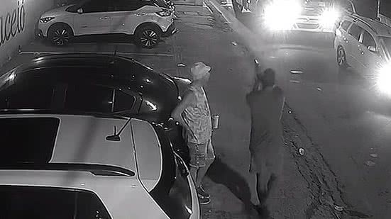 Como mostram as imagens acima, a vítima assustada fugiu por trás de um ônibus e entre carros que estavam parados no trânsito. O atirador ainda esboçou a vontade persegui-la, porém retornou para a entrada da pousada. O homem que conversava com ele já havia deixado o local.
