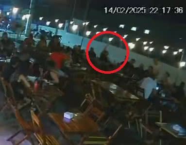 Uma câmera do circuito de segurança do estabelecimento captou o momento dos tiros disparados para o alto. Veja o vídeo: