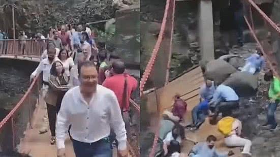 Nesta manhã, então, o prefeito da cidade, José Luis Urióstegui, comemorava a reinauguração da estrutura quando ela cedeu com o peso dos visitantes. Imagens compartilhadas nas redes sociais mostram o momento em que a ponte caiu.