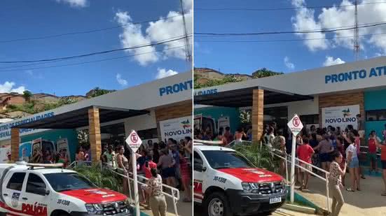 A Polícia Militar confirmou que a ambulância foi apedrejada pelos populares, mas não havia ninguém dentro da viatura no momento do ocorrido. Veja o vídeo que mostra a população na entrada da unidade de saúde: