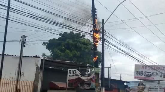Um poste de energia elétrica pegou fogo na Avenida Comendador Gustavo Paiva, no bairro Poço, na manhã desta quarta-feira (12).