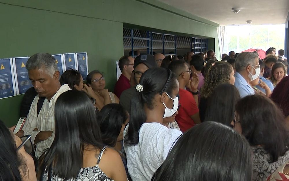 Servidores enfrentaram filas longas para atendimento (Crédito: Reprodução/TV Pajuçara)