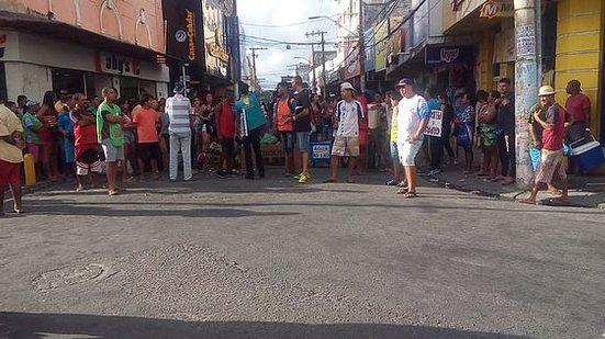 Uma manifestação de ambulantes bloqueou o corredor de ônibus na Rua do Comércio na tarde desta sexta-feira (25).