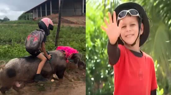 Longe de ser tímido, o "mini vaqueiro" alagoano demonstrou habilidade para montar e cuidar dos bichos. Além da porquinha, ele lida diariamente com os cãezinhos, os cavalos, os jumentos e até com a vaquinha que comprou já com o dinheiro conquistado pelos vídeos nas redes sociais.