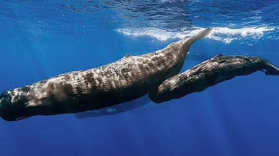 Abaixo, assista ao vídeo do momento em que baleias-cachalote dão cabeçadas uma na outra: