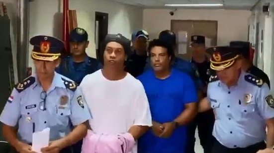Ronaldinho Gaúcho, 39, e seu irmão Roberto de Assis, 49, chegaram algemados para uma audiência, às 10h deste sábado (7), no Palácio da Justiça, em Assunção (o horário local é o mesmo de Brasília).