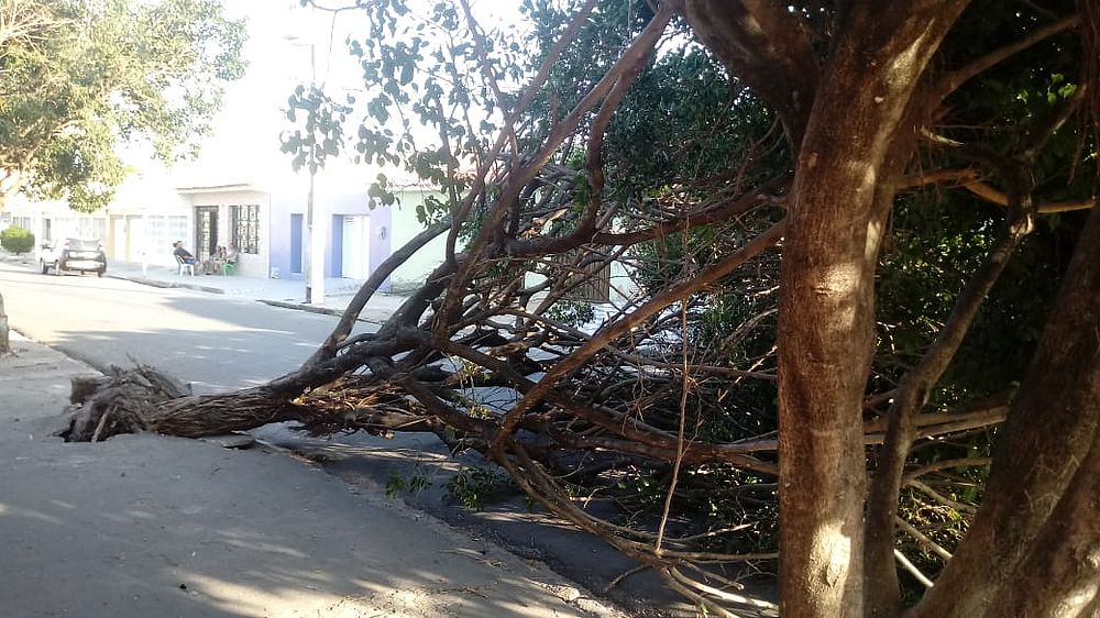 Como o tronco ficou caído na via, os motoristas tiveram que desviar do caminho. Como há uma pequena movimentação de veículos, o trânsito não ficou congestionado.