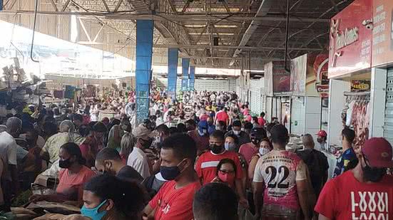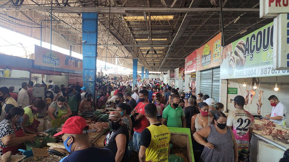 Embora exista há mais de um ano recomendações de distanciamento sociial, no Mercado da Produção nenhum controle de circulação de pessoas parece ter sido adotado nesta manhã, dias depois da prorrogação do decreto estadual que manteve as restrições à circulação de pessoas nesses ambientes. Veja o flagrante exibido no Balanço Geral, da TV Pajuçara/ Record TV: