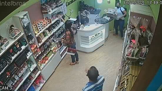 O vídeo obtido pelos agentes também mostra o momento exato em que a mulher, que não foi localizada e nem identificada, pega o celular da vítima e o coloca no bolso da calça. De acordo com os agentes, a guarnição estava fazendo o patrulhamento de rotina, quando foi informada por uma testemunha que havia um homem em uma loja de lingerie que teria participado de um furto na região.