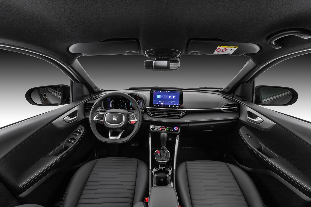 O interior mantém o estilo italiano somado ao toque brasileiro, com painel em tons prata e cinza com diferentes elementos, e mix de texturas agradáveis ao toque que criam um alto valor percebido pelos passageiros. Completam o habitáculo o carregador por indução, painel 100% digital e o sistema multimídia com até 10,1 polegadas com Apple CarPlay e Android Auto sem fio. O porta-malas dispõe de 370 litros de capacidade, que podem ser ampliados ainda mais graças ao rebatimento do banco traseiro na proporção 60/40.