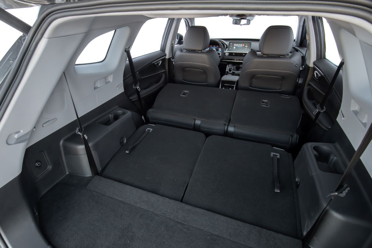 Com capacidade para sete passageiros, a configuração dos bancos é modular, o que traz uma série de possibilidades de uso: a terceira fileira de bancos, que fica embutida no piso quando rebatida, pode ser repartida em 50/50 e a segunda fileira em 60/40.