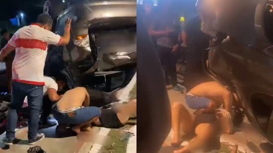 Em imagens enviadas ao TNH1, é possível ver que o veículo foi parar em cima da ciclovia da avenida e partes dele ficaram espalhadas no local. Além disso, as imagens mostram uma pessoa presa às ferragens e mulher ao chão, ferida e com sangue ao redor dela. Confira: