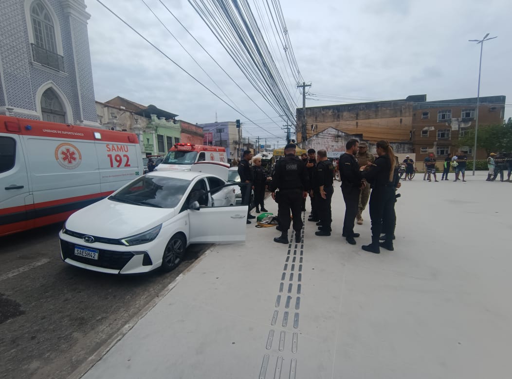 Uma troca de tiros entre um homem e policiais da Operação Policial Litorânea Integrada (Oplit) deixou um morto e quatro feridos, na manhã deste sábado, 11, na Praça dos Martírios, no Centro de Maceió. O homem morreu baleado no carro, enquanto a mãe do suspeito e duas crianças, filhas dele, foram socorridas para o Hospitla Geral do Estado, no Trapiche. Uma policial civil também levou um tiro, que pegou no colete, e também foi para o hospital.