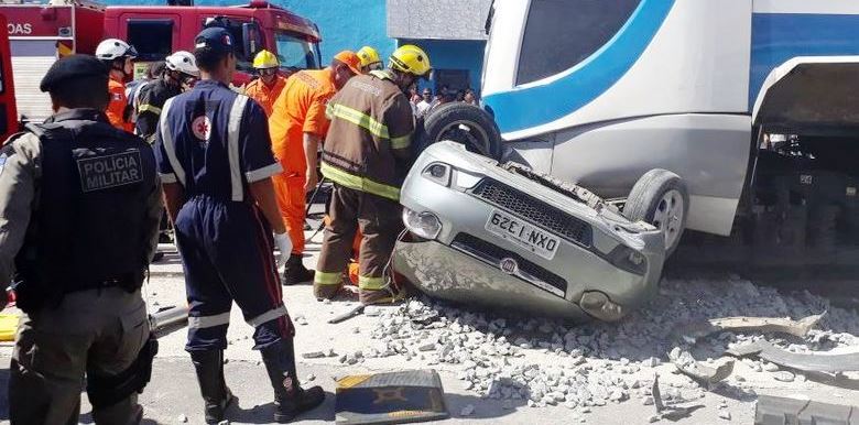 Foram instantes decisivos que já provocaram um trágico acidente no dia cinco de março deste ano, que deixou dois mortos e vários feridos em outro trecho do VLT, no bairro do Poço. O motorista de um Fiat Strada realizou uma conversão pela linha férrea quando foi atingido pelo VLT. O motorista, José de Arimatéia Soares, de 66 anos, foi indiciado por homicídio culposo, quando não há intenção de matar. A imagem abaixo foi registrada logo após o acidente.