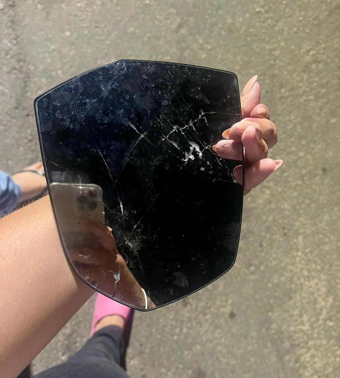 Foto mostra o retrovisor que foi encontrado no local do atropelamento.