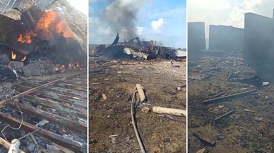 O registro (veja abaixo) mostra o depósito ainda em chamas, completamente destruído e com uma grande quantidade de metal retorcido. De acordo com informações iniciais apuradas pelo TNH1, no local havia quatro contêineres feitos de estrutura metálica, sendo que dois armazenavam de forma irregular uma quantidade ainda não informada de fogos de artifício.