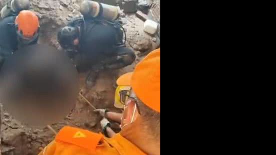 A reportagem do TNH1 teve acesso a um vídeo do momento em que o corpo de Sérgio Murilo Nobre foi retirado de dentro da cova. Nas imagens (veja abaixo), ao menos cinco militares do Corpo de Bombeiros trabalharam no resgate ao corpo da vítima, que estava enterrado e concretado. Os militares tiveram que cavar o local, quebrar o concreto e ainda retirar uma grande camada de terra. Em seguida, eles utilizaram cordas para içar o corpo de dentro da cova até a superfície.