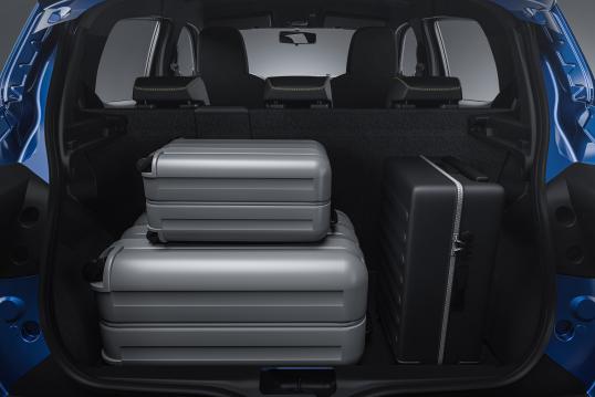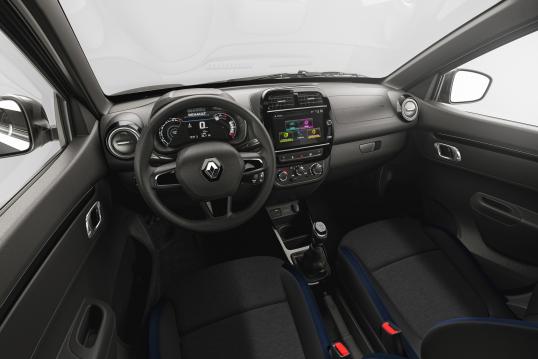 Com visual moderno, o interior do Kwid mantém o ótimo espaço interno. Com 2.423 mm de entre-eixos, o espaço para quem viaja atrás é bastante confortável. Quem senta no banco traseiro, por exemplo, tem o maior espaço para os joelhos do segmento. O mesmo ocorre com o compartimento de bagagem, que acomoda 290 litros e é o maior da categoria. Com banco rebatível chega até 1.100 litros.