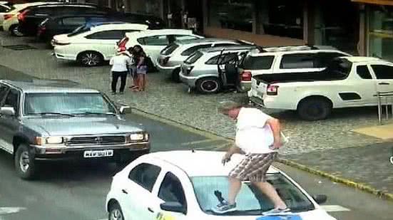 Daguimar subiu no carro e caminhou sobre ele para continuar atravessando na faixa de pedestres. O momento foi registrado por câmeras de segurança da Polícia Militar.