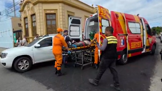 O motociclista e sua passageira caíram com o impacto, mas a mulher não precisou de atendimento médico, enquanto o condutor foi socorrido e levado a uma unidade de saúde, sem informações sobre seu estado clínico.