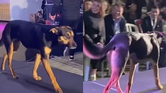 Um vira-lata conquistou as redes sociais após ter sido filmado invadindo a passarela do concurso Miss Paraná, em São Mateus do Sul. No vídeo, ele é flagrado “desfilando” enquanto o público aplaude.