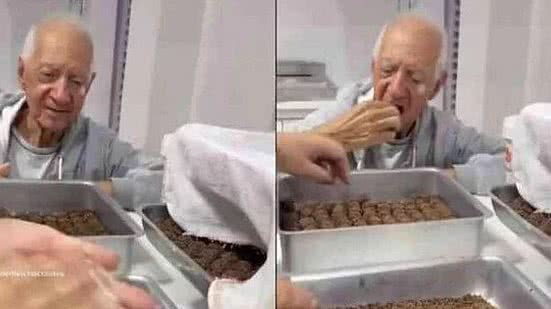Barbara conta no vídeo que o avô tem Alzheimer e ama quando é chamado para dar uma mãozinha na confeitaria da neta. “Agora eu descobri porque ele gosta”, disse a confeiteira, se referindo aos docinhos que ele come durante a produção.