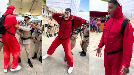 O vídeo mostra Xanddy caminhando pela multidão, disfarçado com o icônico macacão vermelho e a máscara usada pelos personagens da série. Em seguida, ele é parado e revistado pelos policiais. Após a revista, Xanddy retira a máscara, revelando sua identidade aos PMs e àqueles que acompanhavam a cena.