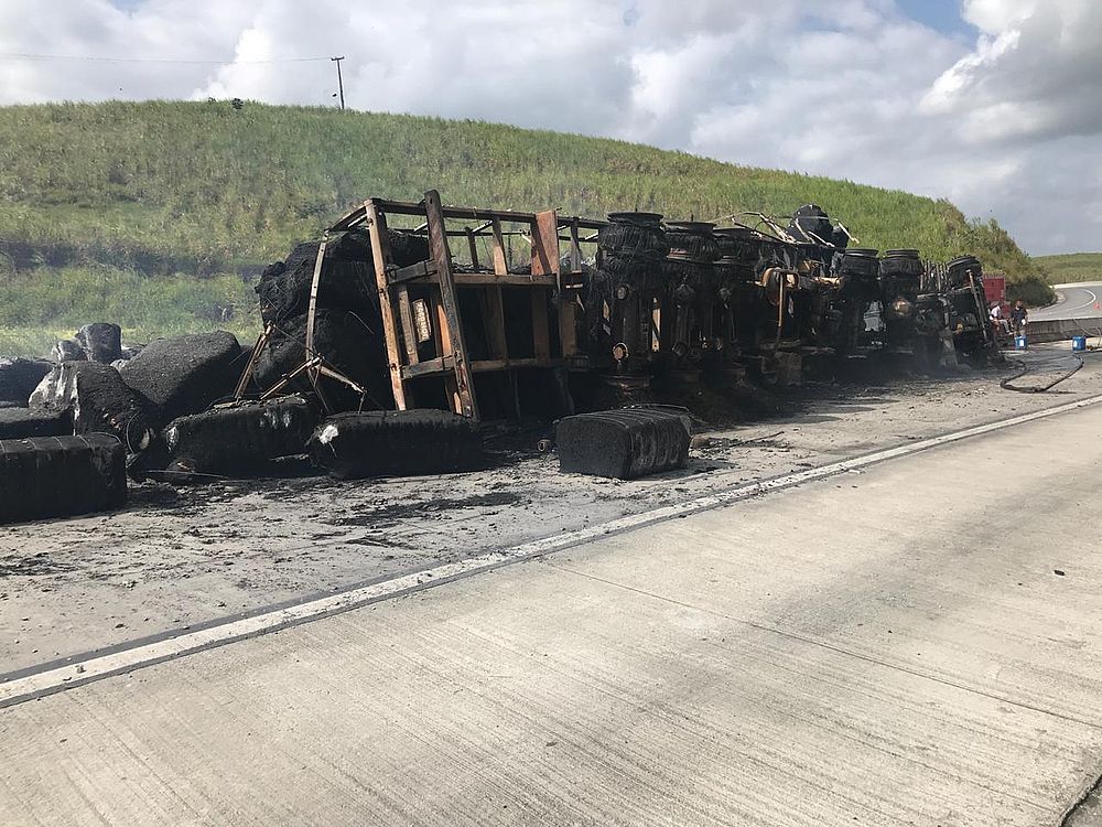 A Polícia Rodoviária Federal (PRF) foi acionada e controlou o trânsito na região. Parte da rodovia ficou interditada para os bombeiros trabalharem no combate ao fogo.