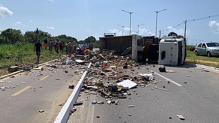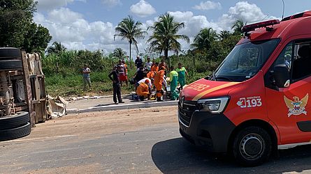 O Serviço de Atendimento Móvel de Urgência (Samu 192) foi acionado, hoje (25), as 9h13, para atender vítima de tombamento caminhão, envolvendo moto, ocorrida na Rota do Mar, sentido bairro de Jacarecica, em Maceió.