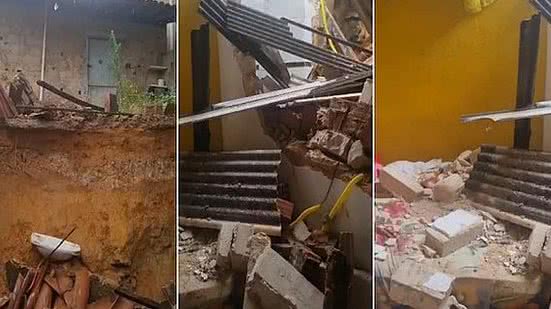 "O muro lá de cima que desabou em cima da minha. Acho que o quintal ficou infiltrando água e caiu em cima da minha", disse Edivan, proprietário da casa.
