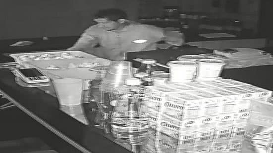 Uma das câmeras internas de um dos estabelecimentos mostram o suspeito, como se tivesse à procura de algo. Veja: