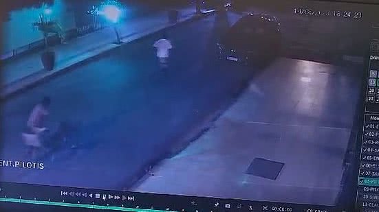 Como as imagens abaixo mostram, um dos suspeitos, que veste uma camisa branca e bermuda, aparece correndo na calçada para fugir e depois passa para o meio da rua, enquanto o comparsa é flagrado empurrando a bicicleta que foi usada para abordar a vítima. Assista: