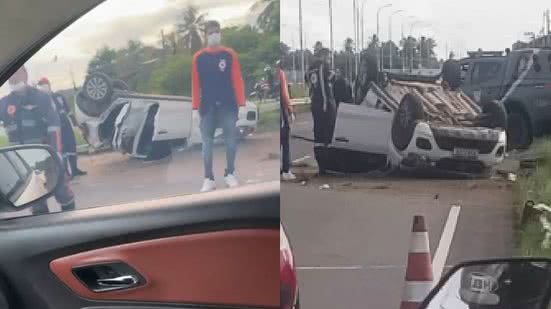 O veículo branco foi um Fiat Mobi e parou de ponta-cabeça. Um poste estava tombado ao lado, o que levou a crer que a estrutura foi derrubada pelo automóvel antes do capotamento.