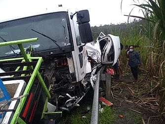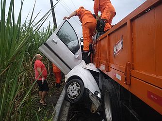 Segundo a corporação, duas pessoas ficaram encarceradas no carro de modelo Celta, de cor branco, e apenas a mulher, identificada como Irene Antônia dos Santos, de 57 anos, que estava como passageira do automóvel, sobreviveu e foi levada para o hospital. O condutor ainda não identificado morreu no local.