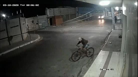 Segundo o dono da loja, que não será identificado, o suspeito entrou por volta das 23h42, escalando pelo portão até subir na marquise e quebrar o telhado da loja. A ação durou 24 minutos. O homem levou uma bicicleta, um celular e R$ 300 em espécie. O prejuízo foi estimado em cerca de R$ 4 mil.