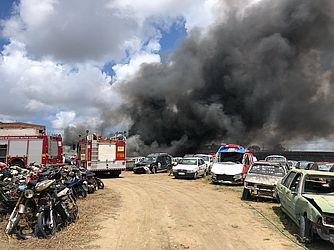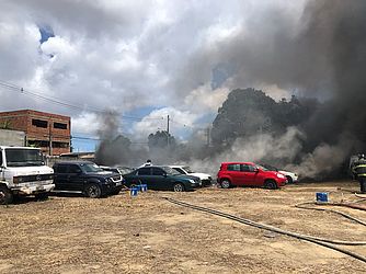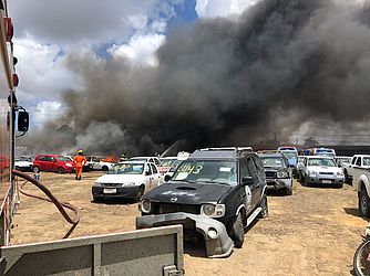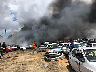 Dezenas de veículos foram atingidos pelas chamas e ficaram totalmente destruídos. De acordo com um dos proprietários do local, cerca de três mil veículos estavam estacionados no galpão quando o fogo teve início.