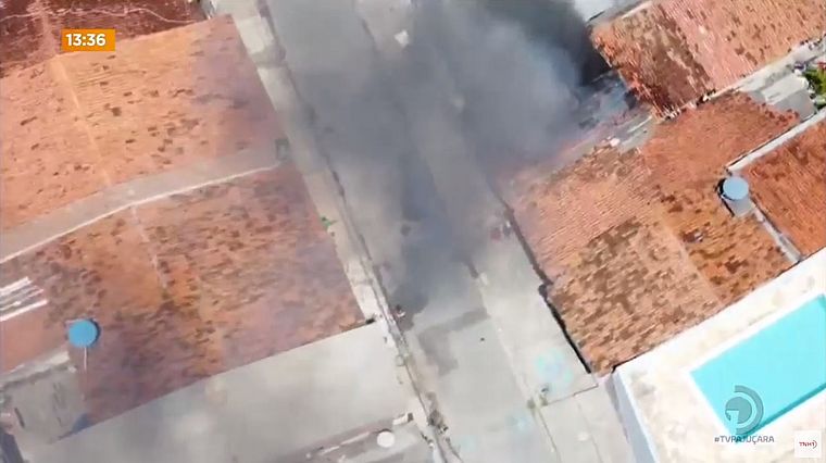 Imagens aéreas exibidas pelo programa Fique Alerta, da TV Pajuçara/Record TV, registraram o momento em que moradores da região utilizaram desesperadamente baldes de água para tentar de alguma maneira diminuir o fogo.