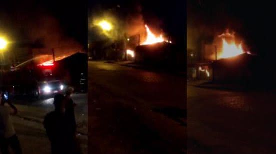 Um incêndio de grandes proporções destruiu parte de uma residência no Conjunto Cleto Marques, no Tabuleiro do Martins, parte alta de Maceió, na noite desse domingo (27).