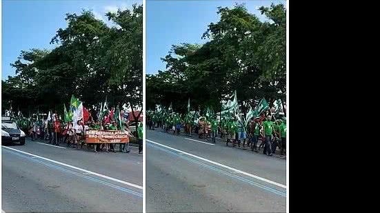 Com faixas e cartazes, os integrantes dos movimentos sociais ocuparam duas faixas da pista e caminharam de forma pacífica. Eles devem se concentrar, no fim do ato, na Praça dos Martírios, no Centro, ainda nesta manhã.