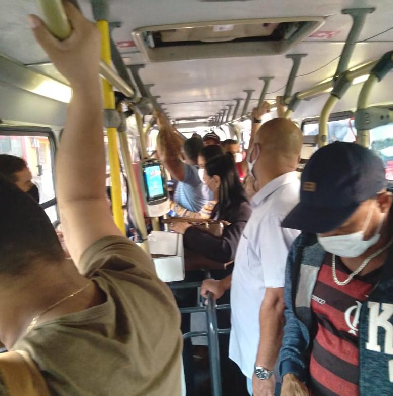 Segundo o decreto governamental de distanciamento social controlado para combater o coronavírus, os passageiros devem estar sentados no automóvel e não é permitido seguir viagem em pé, o que foi descumprido nesta manhã.