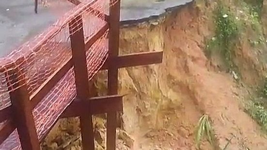 A estrutura de madeira improvisada pela Prefeitura de Maceió na Ladeira da Moenda, no bairro de Pitanguinha, cedeu com as fortes chuvas registradas entre a noite desse terça e a manhã desta quarta-feira (25).