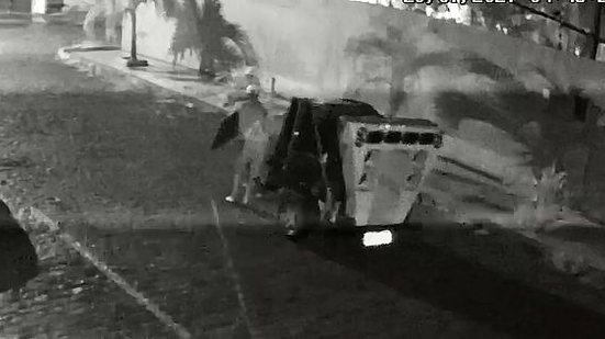 Um vídeo registrado por uma câmera de segurança mostra os suspeitos em dois momentos. O primeiro foi feito às 2h36 daquela sexta-feira, quando a dupla vai em direção à residência. O segundo registro mostra os dois carregando uma televisão e uma carroça com um paredão de som às 4h45 da manhã.