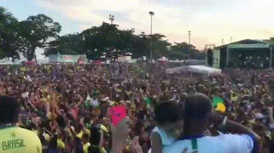 Na praça Multieventos, na Pajuçara, a partida foi transmitida por um telão e centenas de pessoas acompanharam e vibraram com os gols do Brasil. Veja: